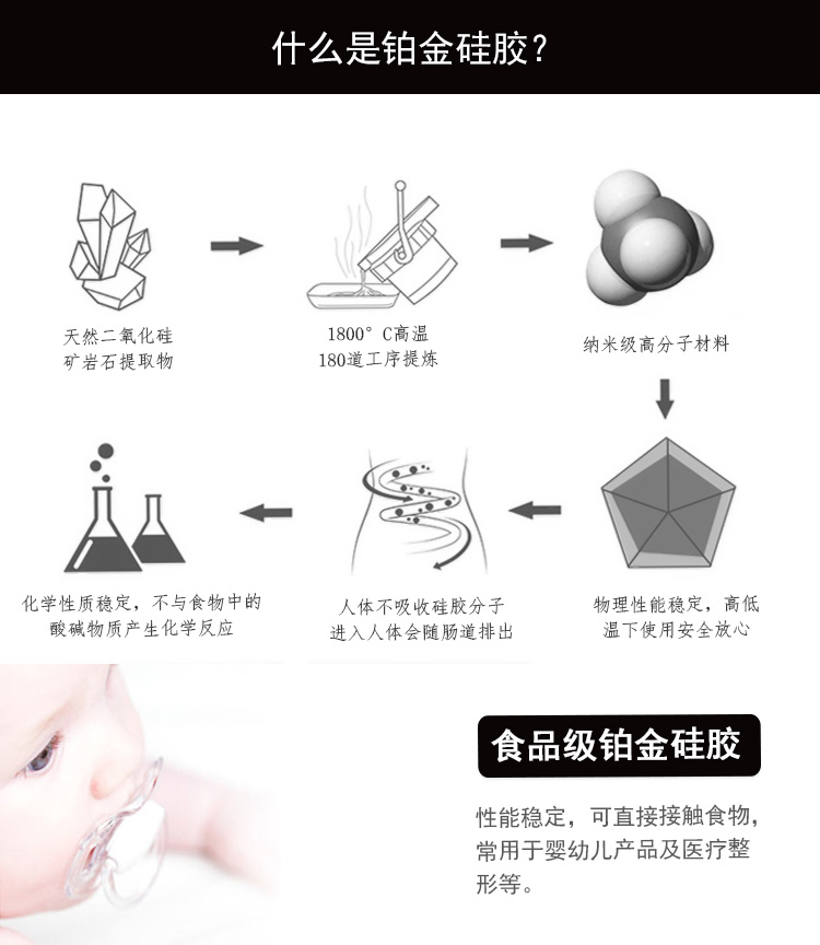 A: 我们的硅胶产品全部通过了FDA, LFGB, EN71, ASNZS ISO 8124, CCPSA 等测试,多国出去安全认证,与奶瓶同材质同环境下生产。
