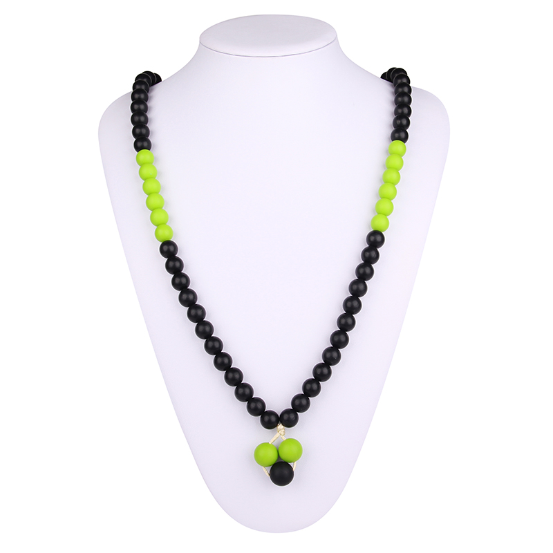 硅胶项链颜色亮丽,项链颜色鲜艳,款式多样,亮丽的颜色可以吸引宝宝的注意力,促进宝宝的视觉系统发育,增强对颜色的辨别能力。