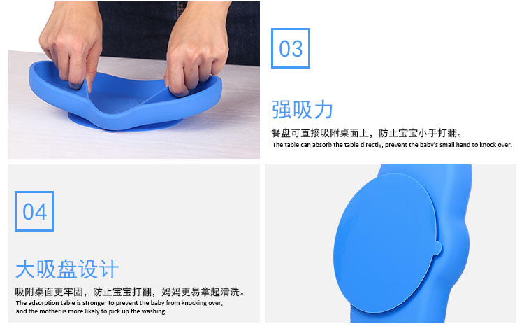 2.餐盘采用食品级硅胶,不含BPA,无毒无异味,健康环保。